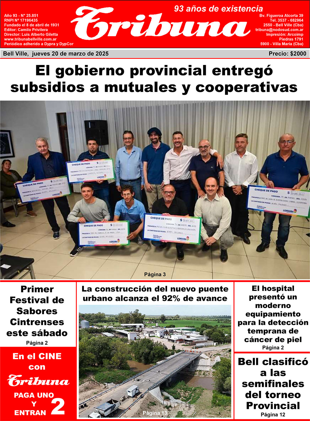 El viernes y en el marco de un recorrido por distintas localidades del departamento Unión, el ministro de Cooperativas y Mutuales de la provincia de Córdoba, Gustavo Brandán, entregó aportes a cooperativas de la región para mejorar la prestación de servicios, potenciar la producción, generar empleo o fortalecer la capacidad funcional.