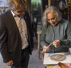 El intendente visitó a la artista que confecciona un