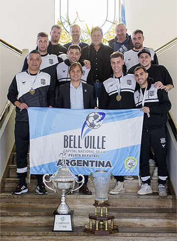 Al cierre, los invitados recibieron un balón oficial que identifica a Bell Ville como Capital Nacional de la Pelota de Fútbol, para que autografiado por los campeones sea depositado como recuerdo en las vitrinas del club.