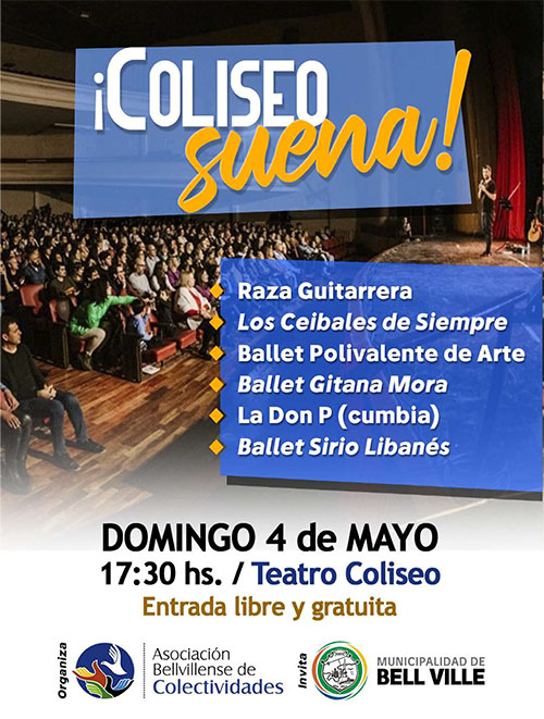 Este domingo - 18 hs.: gran festival para la familia. Entrada libre y gratuita. Raza Guitarrera, Los Ceibales de Siempre, Ballet del Polivalente de Arte, Gitana Mora y Ballet Sirio Libanés. Conduce Diego Cepeda.