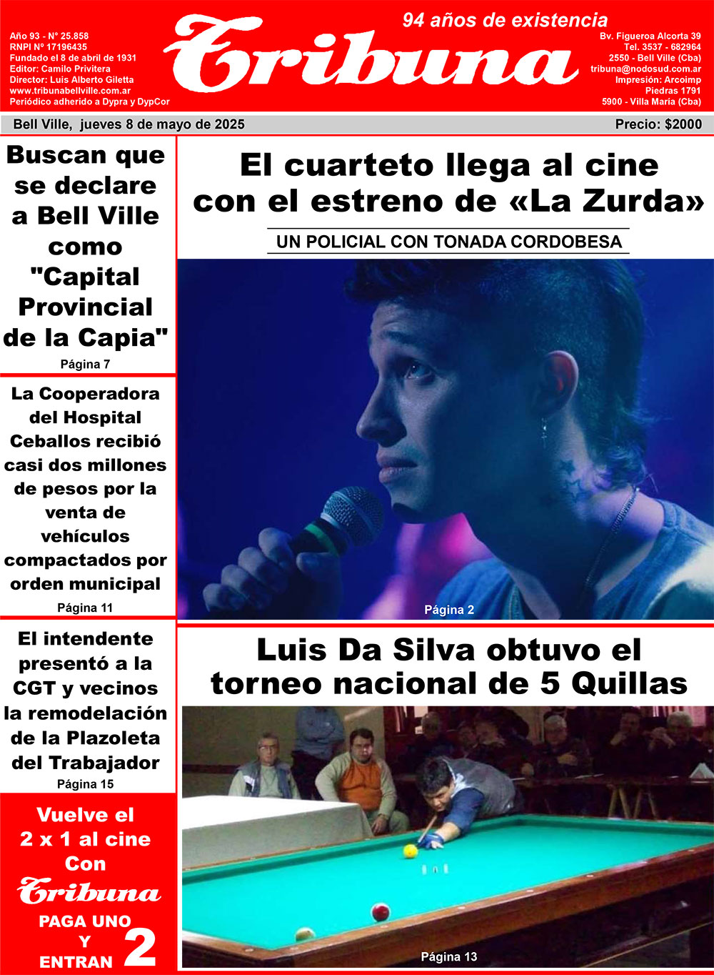 El film podrá verse en una de las salas de SudCinemas (Mitre 50) en el horario central de las 21:25. Además, con el periódico Tribuna, existe la promoción del 2x1, o sea, paga uno e ingresan dos.