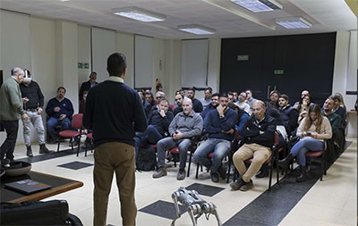 Los expertos Sergio Cusmai (Inteligencia Artificial y Realidad Virtual), Mariano Franzoni (Comercio Internacional) y Paula Pincolini (Desarrollo de Nuevos Mercado), abordaron una variada temática sobre IA, especialmente su implementación en industrias con retorno rápido de inversión e interacción con robots cuadrúpedos, explorando sus capacidades.