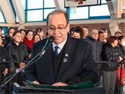 Previo al discurso, el jefe municipal otorgó una bandera de ceremonias al Centro Educativo Nivel Inicial-CENI o Jardín de Infantes “Dr. Dalmacio Vélez Sarsfield”,