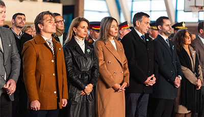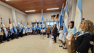 Asimismo, lo hicieron miembros del Centro de Veteranos de Guerra Islas Malvinas”, del Beagle; Asociaciones Culturales Sanmartiniana y Güemesiana; representantes de instituciones locales, abanderados, escoltas, docentes y directivos de establecimientos educativos y numeroso público que colmó el amplio edificio.