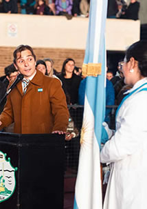 Dirigiéndose a los promesantes, el jefe municipal preguntó: “¿Saben qué tienen en común sus papás, sus abuelos, sus maestras, los médicos que nos cuidan, los bomberos y policías que nos protegen, los deportistas que nos representan, y los vecinos que ayudan en silencio todos los días?” y respondió: “todos ellos, cuando eran chicos como ustedes, un día como hoy, también dijeron ¡Sí, prometo! Y desde ese momento, empezaron a construir con pequeños gestos un país mejor”.