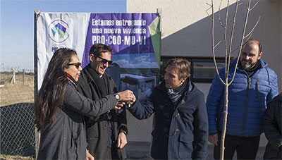 El intendente Juan Manuel Moroni hizo entrega de una nueva unidad habitacional del programa cooperativo municipal Pro.Coo.Mu.Vi. a los vecinos Nicolás Caponcelli y Cintia Núñez, quienes ya disfrutan de su nuevo hogar en barrio Campos del Oeste.
