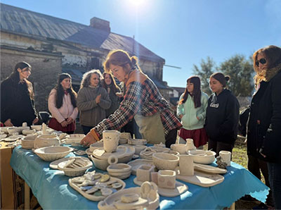 taller de cerámica “Buenas Manos” y del taller de cerámica para personas ciegas, pertenecientes a los Núcleos Barriales del área de Cultura y Educación, se enriqueció con un valioso aporte desde la inclusión y el trabajo colectivo. Desarrollada a lo largo de toda la jornada, tuvo como principal objetivo rendir homenaje a la Pachamama, nuestra madre tierra, a través de una de las prácticas tradicionales más significativas del pueblo aborigen: la quema ancestral; sumándose una delegación del Centro Superior Polivalente de Arte “Martín Malharro”, entre ellos, la profesora Ro-mina Brusso y su grupo de estudiantes de quinto año del ciclo Producción Pintura, producción tridimensional, quienes aportaron su perspectiva artística a la propuesta. La quema comenzó a las 10 de la mañana y se extendió hasta las 17, tiempo en el cual se llevó a cabo el proceso ancestral de templado y cocción de las piezas de cerámica. El ritual, cargado de simbolismo y conocimiento de los ancestros, consistió en la creación de un pozo de gran diámetro, donde se encendió un fuego central y se dispusieron las piezas de cerámica para que se templaran. Luego, las piezas fueron cubiertas con ramas y cenizas, manteniendo el fuego durante aproximadamente cinco horas para lograr la cocción completa. El ambiente fue de total respeto hacia la naturaleza y las tradiciones, permitiendo que todos los presentes vivieran una experiencia profundamente enriquecedora. Recibieron conocimientos ancestrales que forman parte de nuestra identidad cultural, fortaleciendo la conexión con nuestras raíces y la importancia de preservar y compartir este legado con las nuevas generaciones. Sin lugar a dudas, la jornada se erigió como un homenaje a nuestra cultura originaria y a la vida en armonía con la naturaleza.