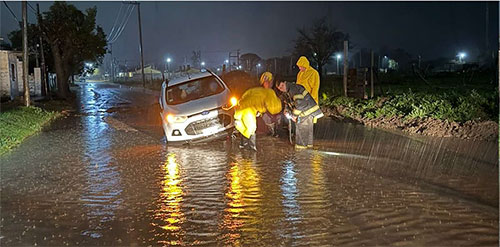 Una inédita precipitación pluvial anegó el sábado a varios sectores de nuestra ciudad y provocó numerosas asistencias de los Bomberos Voluntarios ante el reclamo incesante de vecinos por la caída de ramas, dificultades de tránsito en la vía pública, obstrucciones de los sistemas de desagües y desbordes de cloacas, entre otras graves inconvenientes atribuídos a una infraestructura ineficiente para extensos temporales como en este caso, el denominado "tormenta de Santa Rosa".
