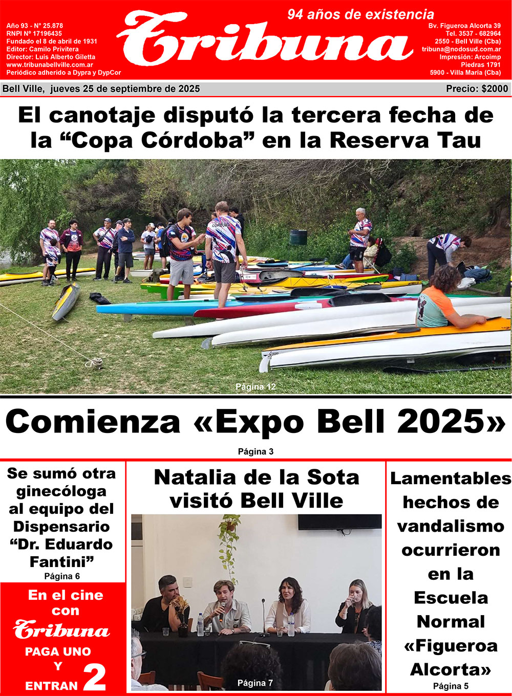 Desde mañana viernes y hasta el domingo inclusive se desarrollará en nuestra ciudad una renovada edición de la "Expo Bell 2025" en donde confluirán el campo, la industria y el comercio, emprendidos por bellvillenses en el marco de una muestra que desde hace 20 años no se realizaba y que ahora, bajo la organización conjunta de la Sociedad Rural de Bell Ville y del Centro de Empresarios (...) |