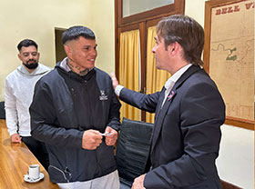 En ese marco, el intendente Juan Manuel Moroni recibió al boxeador Edilberto Fernández, oriundo de Corrientes y radicado en nuestra ciudad años atrás para potenciar su amateur y, luego, pasar al profesio nalismo. En la actualidad, el púgil protagoniza jerarquizadas carteleras y transmisiones televisivas de noches de boxeo en Argentina. En su momento, entrenado por Jesús Tulián en el gimnasio Jet Fitness, alcanzó el título provincial amateur y registró un crecimiento que le hizo sostener la corona hasta que ingresó al campo rentado hace poco más de un año, en setiembre de 2024. Desde su debut como profesional, “King Kong” está afincado en Mendoza. Su técnico es Pablo Chacón, quien fuera campeón mundial de la OMB en peso pluma y ganador de la medalla de bronce en los Juegos Olímpicos de Atlanta 1996. El atleta le dijo a Moroni que alejarse de Bell Ville le causó una sensación de desarraigo por el cariño y apoyo que siempre tuvo aquí, hasta que logró adaptarse para ir por grandes objetivos en su carrera. Recordó que sigue invicto tras cinco peleas y que su último triunfo fue el 18 de octubre, por nocaut técnico, en Villa María, y en una velada televisada por TyC Sports durante la cual los conductores resaltaron su fuerte vínculo con Bell Ville. Tras ese combate, el boxeador se tomó unos días para visitar la ciudad. “No nací acá pero me siento bellvillense. Acá me formé boxísticamente”, le dijo Fernández al intendente.