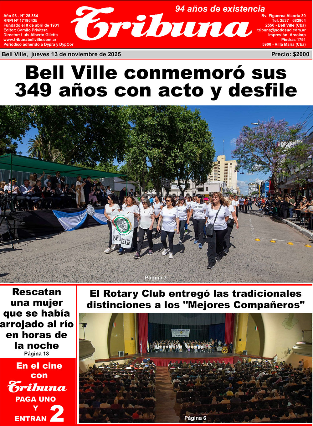 El domingo 9 de noviembre, más de un centenar de instituciones desfilaron en el acto por el aniversario 349 de Bell Ville. El clima primaveral acompañó y miles de vecinos disfrutaron una jornada que fue una verdadera fiesta cívica, en cuyo marco la ciudad mostró su progreso, su enorme potencial y su orgullo por el pasado, el presente y el futuro.
