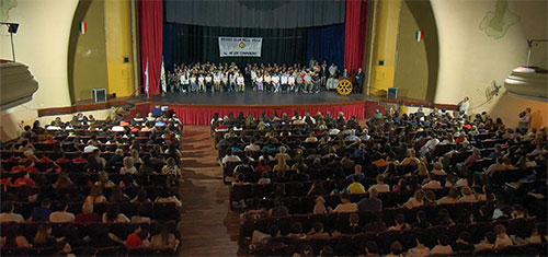 Cabe recordar que esta convocatoria se ha organizado de manera ininterrumpida (salvo en pandemia) durante más de 80 años. En esta ocasión, más de 120 alumnos de distintos establecimientos educativos de Bell Ville, Morrison, Justiniano Posse, San Marcos Sud y Monte Leña se dieron cita con sus familiares y amigos en el Teatro Coliseo, participando del evento la presidente del Concejo Deliberante, Noelia Ferrari, y la directora de Cultura y Educación, Josefina Garrone. Al expresar sus respectivas palabras de bienvenida, el presidente del club rotario, Dr. Luis Werlen Zbrun, y el gobernador de distrito, Leonardo Mangoldt, destacaron la vigencia de los principios de esta organización internacional y el valor de promover la empatía, el servicio y el trabajo conjunto. Ambos coincidieron en que la distinción refleja una esperanza en las nuevas generaciones y reafirma el espíritu solidario que caracteriza a la institución desde sus orígenes. Durante el acto se entregaron reconocimientos a dos vecinas que, a través de su labor cotidiana, representan los valores de la solidaridad y la cooperación. Entre ellas, fue homenajeada Tomasita Olariaga, presidenta del Centro de Jubilados Bell Ville, quien recibió el reconocimiento como ciudadana destacada por su tarea de contención y acompañamiento a los adultos mayores. Con emoción, agradeció el gesto y subrayó la importancia del trabajo en equipo para sostener un espacio activo y solidario. También fue distinguida Doris Grando, docente jubilada y una de las integrantes más antiguas del Rotary Club, con 45 años de trayectoria en esta entidad.