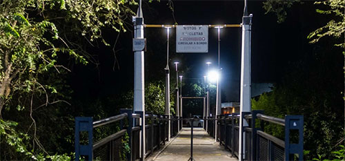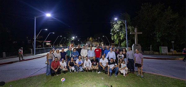 Con luminarias modernas y eficientes, la mejora integral del principal cruce del río ya resalta en el centro de la ciudad. El jueves por la noche, con la presencia de vecinos del sector, el intendente Juan Manuel Moroni, funcionarios y empleados de la Municipalidad y el legislador por el Departamento Unión Carlos Briner, bindaron una breve conferencia de prensa sirvió como marco inaugural de la renovación del espacio emblemático de Bell Ville. Moroni manifestó que gracias al esfuerzo de los bellvillenses y al cumplimiento por parte de la Administración de las previsiones del Programa de Renovación y Mantenimiento de Puentes y Pasarelas se ejecutó un trabajo necesario para la comunidad. Por su parte, el secretario de Obras, Servicios y Ambiente Ernesto Borrageros agradeció la paciencia de los ciudadanos por la intervención en la vía pública. El arquitecto Gabriel Lagrava, director del área de Planificación y Gestión de Obras, explicó que se rescataron partes de las antiguas barandas para optimizar costos y preservar de la historia del lugar. Asimismo, confirmó que se planea continuar con el embellecimiento del corredor de la costanera. A su turno, Carla Conti, presidenta del Centro Vecinal Ctalamochita, manifestó su alegría por la renovación, le agradeció a la gestión y recalcó que las nuevas luces led suman seguridad, en especial para las mujeres del barrio que circulan por el puente.