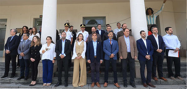 El mandatario local estuvo acompañado por una importante comitiva de funcionarios municipales, integrada por el secretario de Gobierno, Gastón Nilia; el secretario de Obras, Servicios y Ambiente; el secretario de Desarrollo Social, Horacio Pelletti; y el asesor letrado Marcelo Filippi. También se encontraba presente el legislador provincial Abraham Galo y participó un nutrido grupo de concejales, encabezados por la presidenta del Concejo Deliberante, Noelia Ferrari. En el marco de la ceremonia, el intendente hizo entrega de una bandera de flameo para el edificio y recibió presentes institucionales como muestra de reconocimiento, destacándose el acompañamiento y la predisposición permanente del municipio.